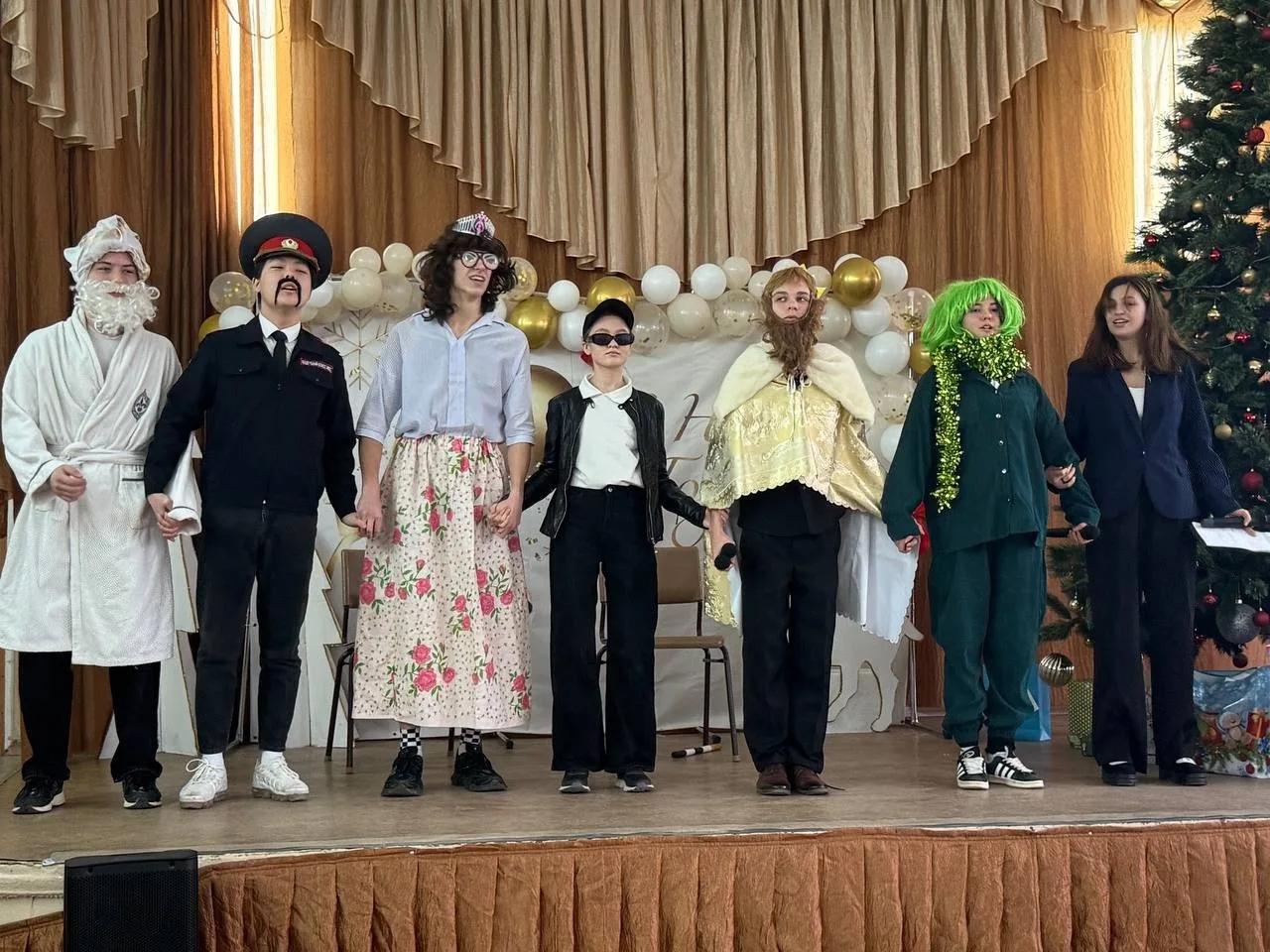 Дед Мороз и Снегурочка, сказочные герои поздравляют учащихся, педагогов и гостей нашей школы, демонстрируя способности и навыки, полученные учащимися на занятиях по актерскому мастерству в "Овации"